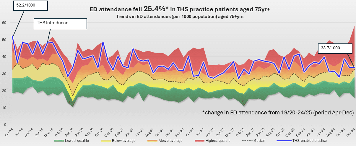 This is driving sustained reductions in A&E attendances for people aged 75 and over, with even greater reductions in care homes.